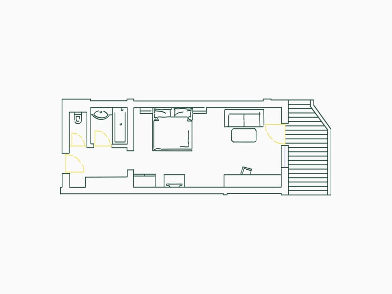 For your comfort and convenient, the “Alpin” apartment room bathroom and WC are in separate rooms. The modern bathroom is fitted with a shower that allows wheelchair access.